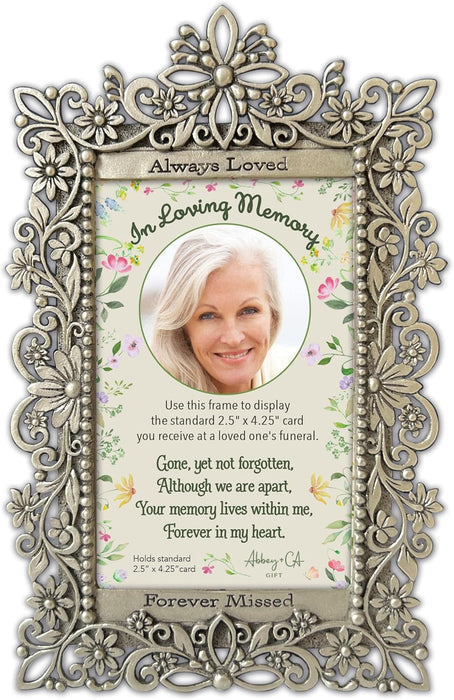 - ALWAYS LOVED: Celebrate the life of your lost loved one and keep your memories close with this beautiful memorial card frame features an engraved memorial quote that reads, "Always loved, forever missed," and has a lovely floral design throughout